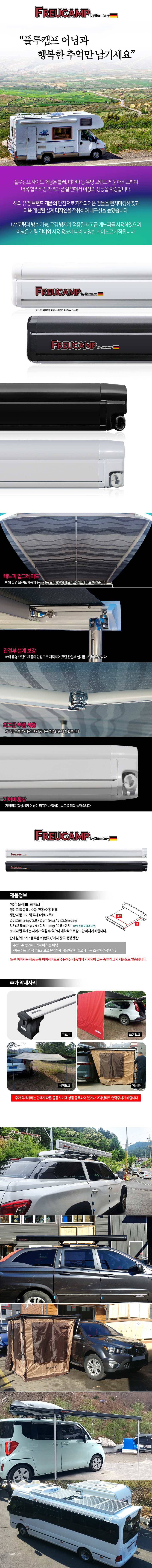 플루캠프 카라반어닝 수동 2.6x2m 차박 텐트 그늘 타프 방수 자외선차단